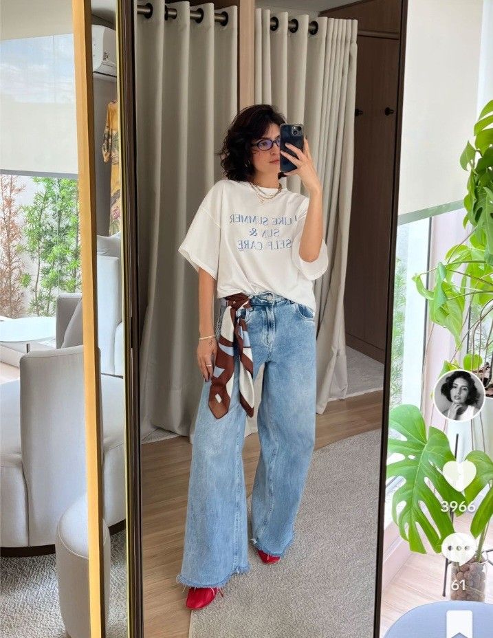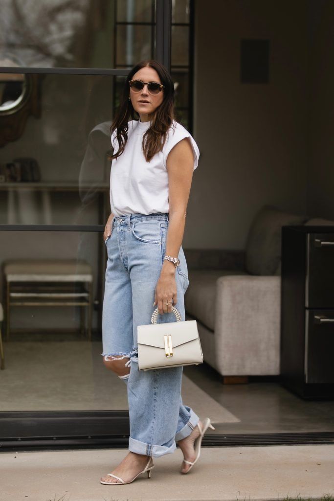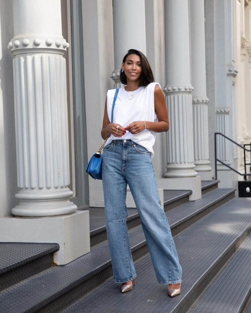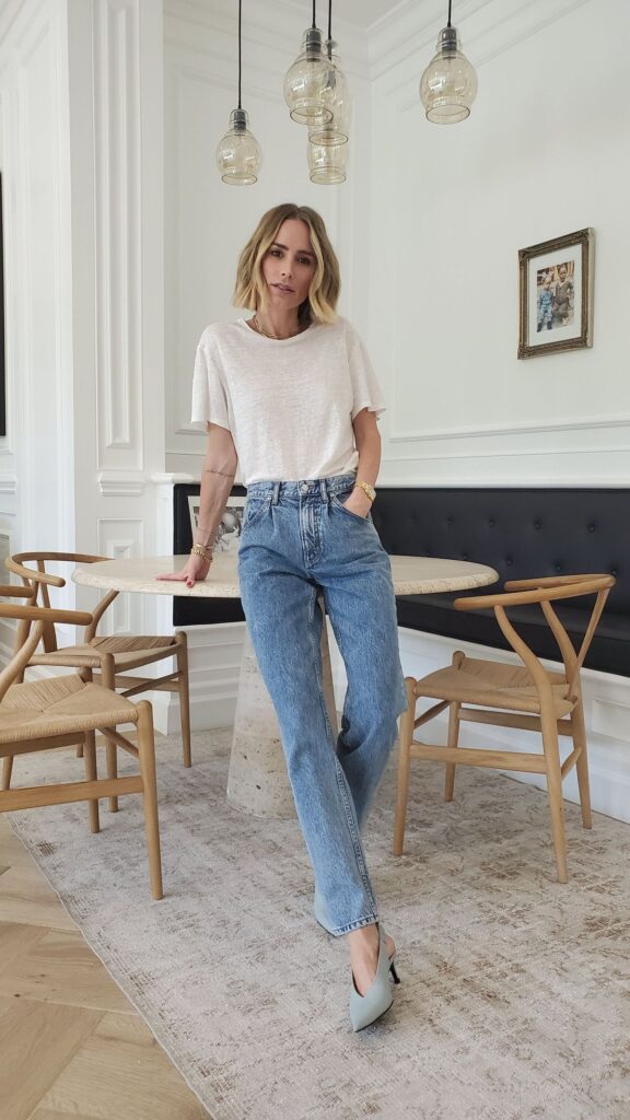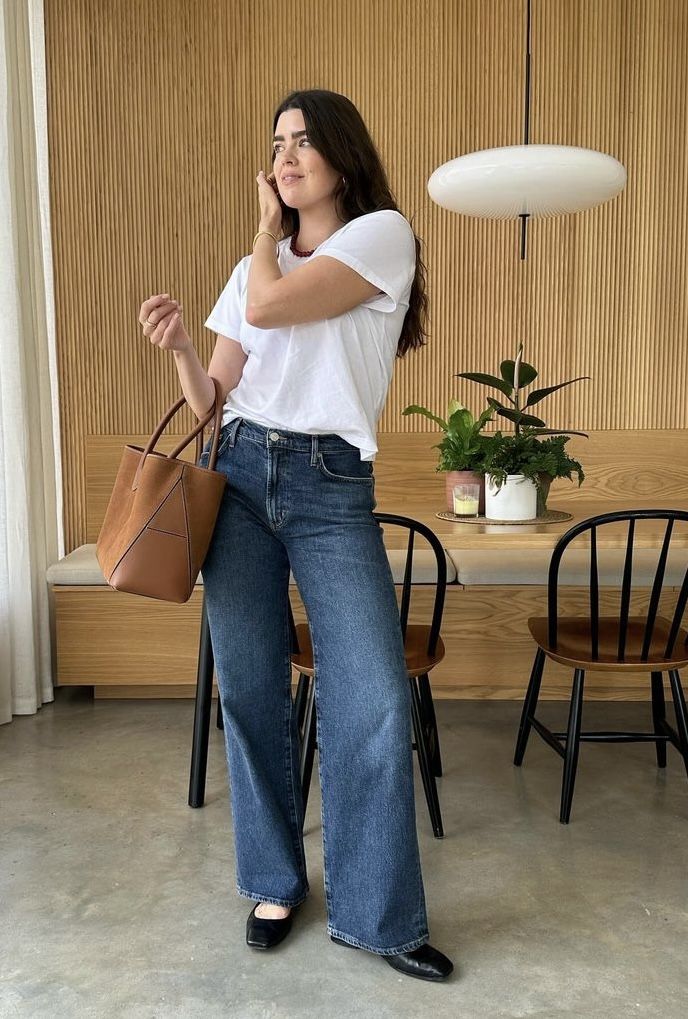 From charcoal sneakers to dove gray flats, this refined color choice elevates your jeans-and-tee combination while maintaining the relaxed, approachable vibe that makes this outfit formula so universally appealing and wearable.