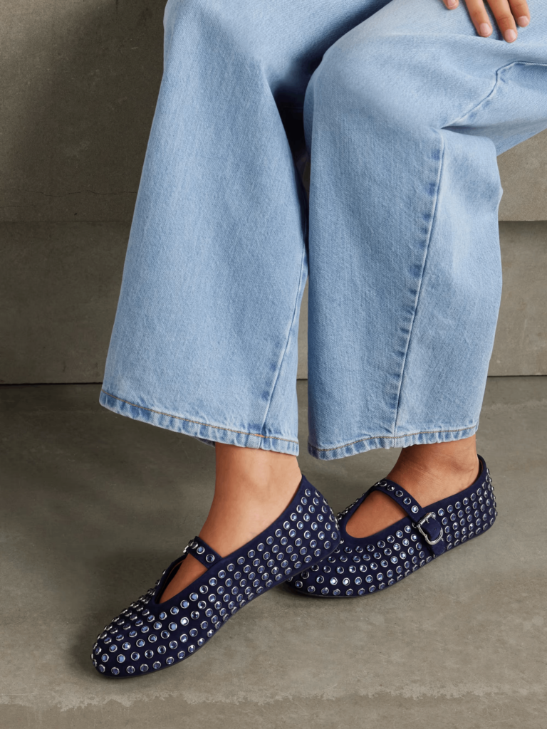 When ordinary simply won’t do, the KHAITE Marcy flats step in with their dazzling array of crystals. These aren’t just shoes; they’re a celebration of light and luxury.