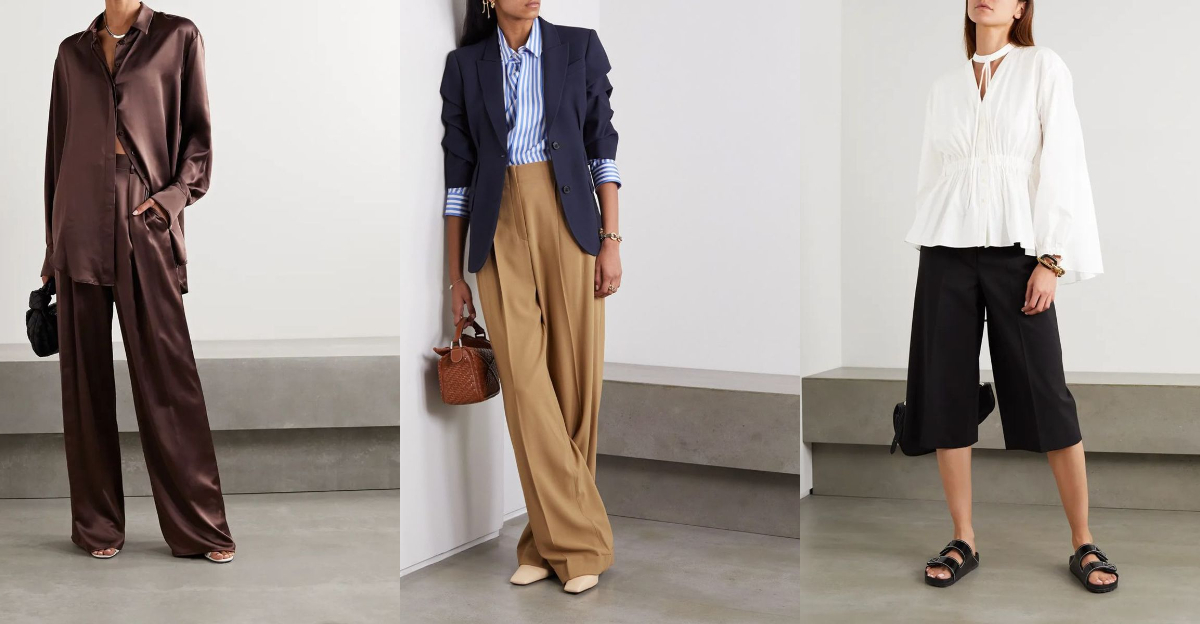 Silk blouses bring a touch of luxury, while knit culottes offer comfort akin to your favorite lounge pants. This pairing achieves a balance of class and ease.