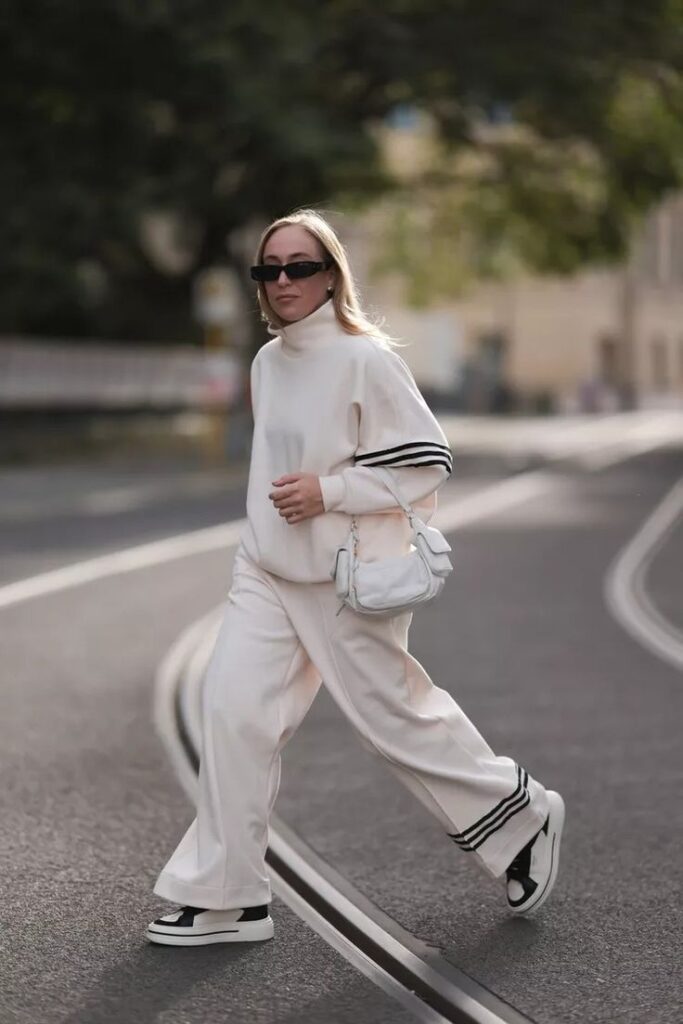 Instead, opt for a sleek, low-profile sneaker — think Adidas Sambas, classic leather slip-ons, or streamlined running shoes. If you love wide-leg pants, make sure they’re cropped to show a bit of ankle, or tuck in your top to define your waist and keep the proportions clean.