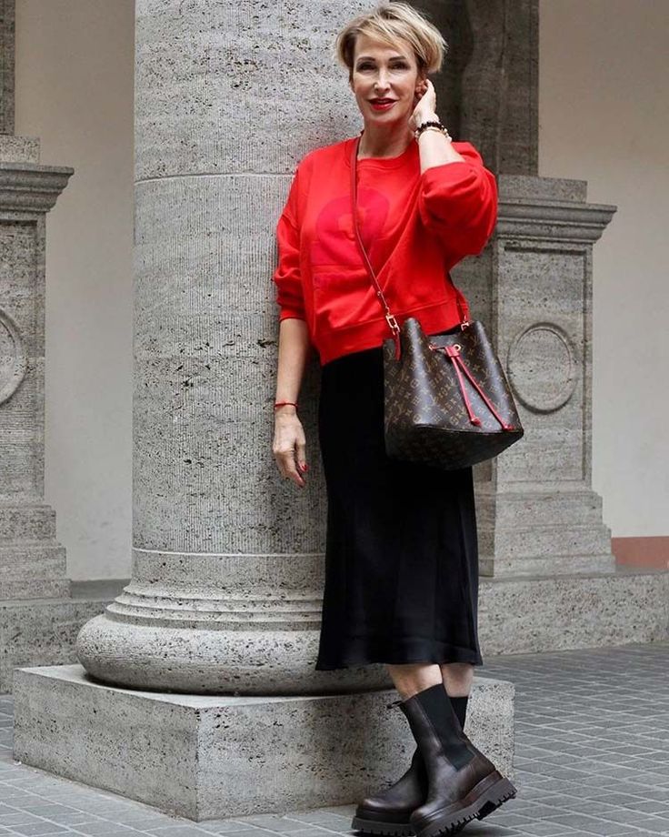 To modernize the combo, opt for heeled ankle boots, pointed-toe silhouettes, or even a sock boot that hugs the ankle and maintains a streamlined shape. A midi skirt with a slit, high waist, or asymmetrical hem can also help create movement and elongation.