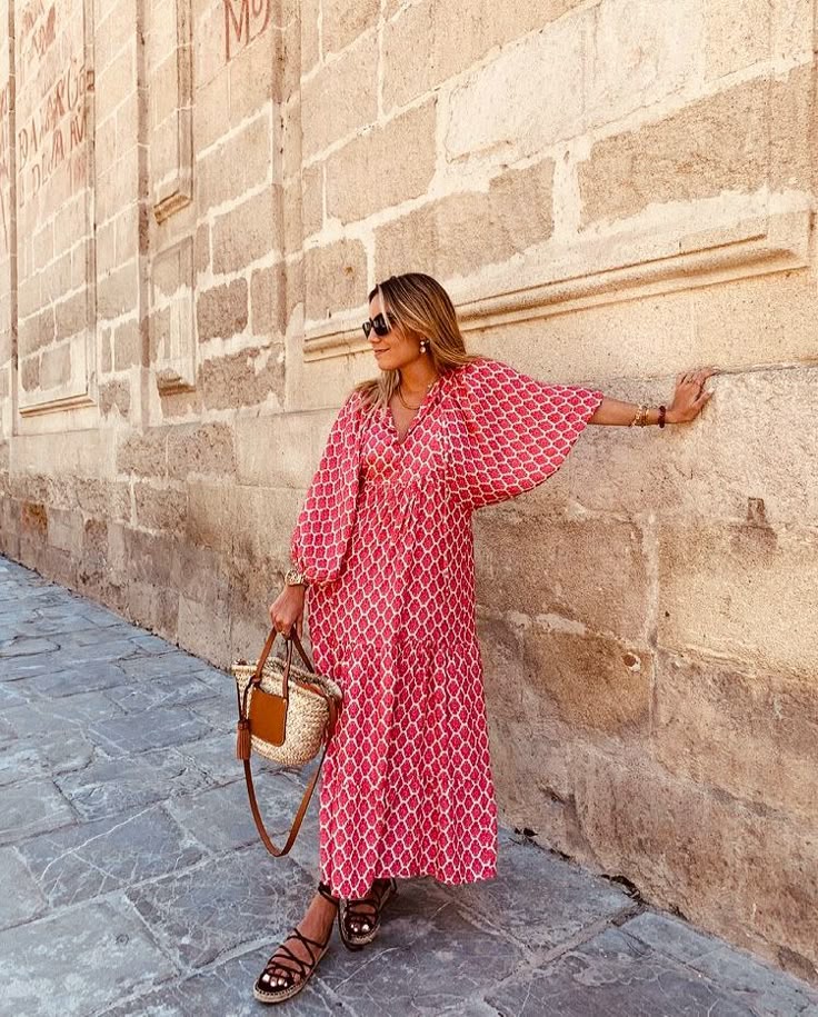 These minimalist sandals don’t just elongate the legs—they anchor the free-spirited energy of the dress with a modern edge. It’s the perfect pairing for poolside soirées or garden parties, where the vibe is relaxed but you still want to feel exquisitely put together.