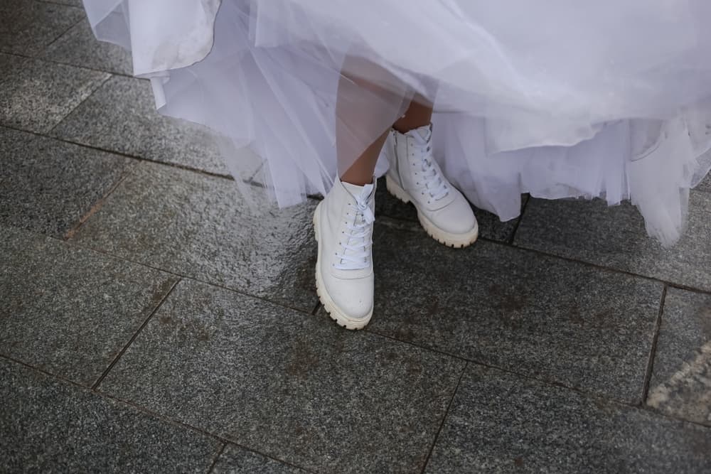 Chunky, combat boots combined with a white wedding party dress (the shorter, the better) are iconic. Whether you go with white combat boots for a monochromatic moment or black combat boots for a “We’re going on our honeymoon on a motorcycle!” moment, we guarantee you’re going to look like a million dollars.