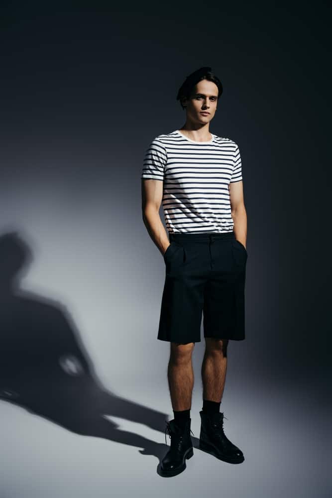Of course, there are a couple of rules you should follow when you’re trying to style these pieces together. First things first, high-top sneakers tend to look better with high-waisted shorts because they give off an elongated silhouette that’s generally desirable.