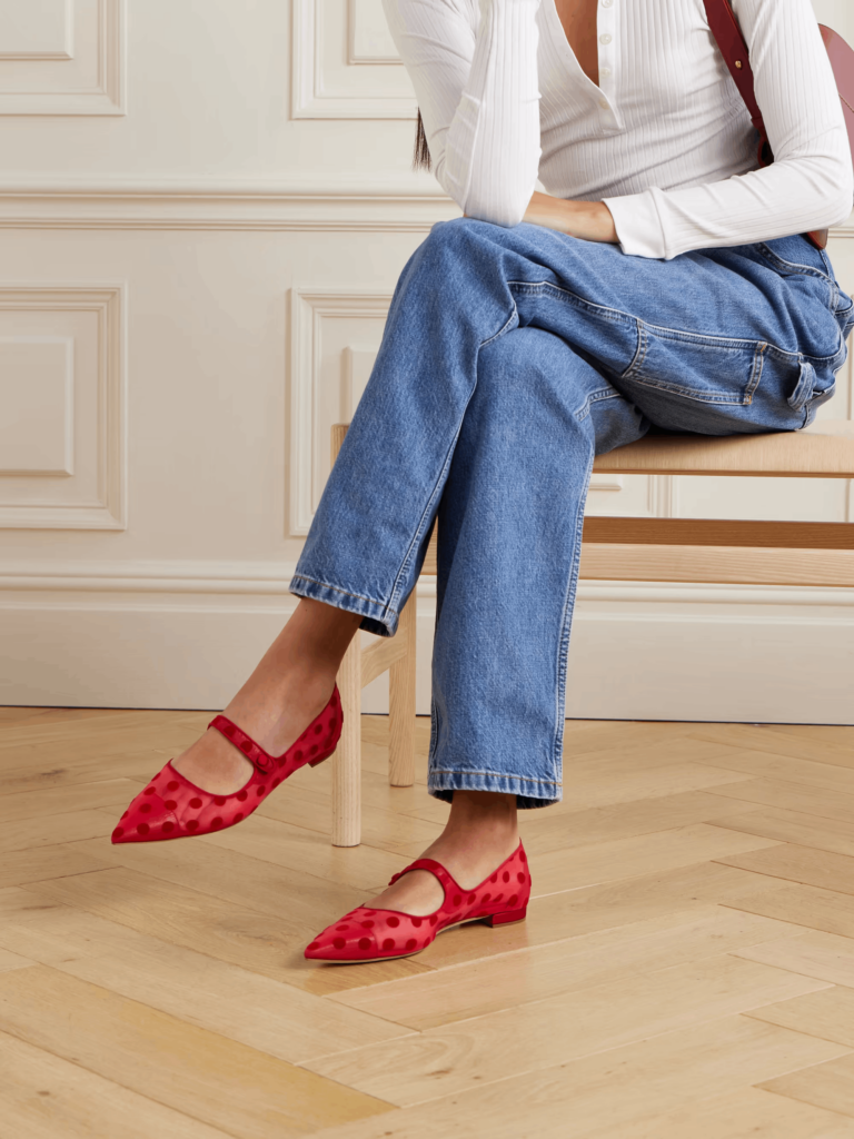 7. MANOLO BLAHNIK Campari grosgrain-trimmed flocked mesh ballet flats