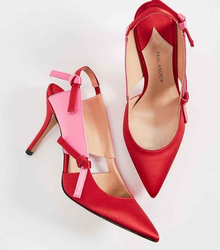 6. Paul Andrew Red/Pink Satin Bow Slingback Pumps