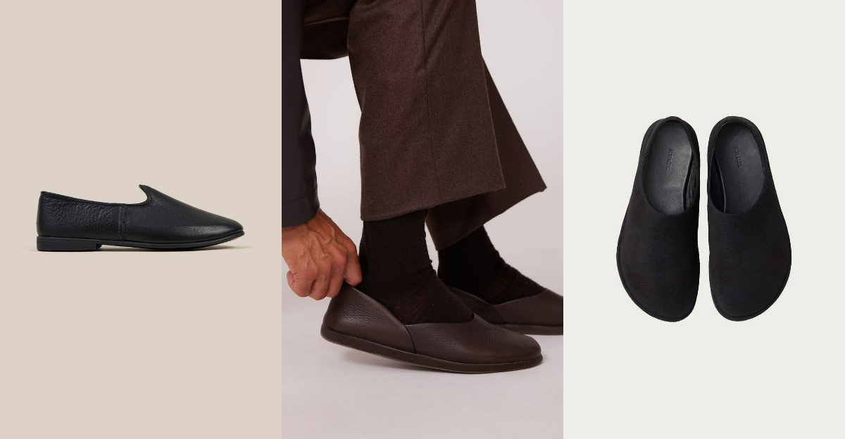 Fusing the grace of ballet flats with the structure of loafers, these leather slip-ons offer a unique twist on minimalist footwear. Ideal for those who appreciate elegance and simplicity, they feature a rounded silhouette and barely-there sole.