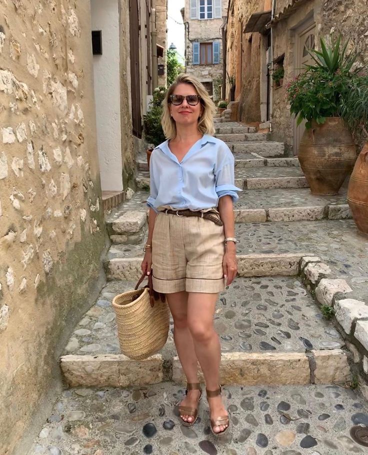 With its mix of texture, classic stripes, and breathable fabrics, this outfit proves linen shorts are the ultimate summer sartorial secret.