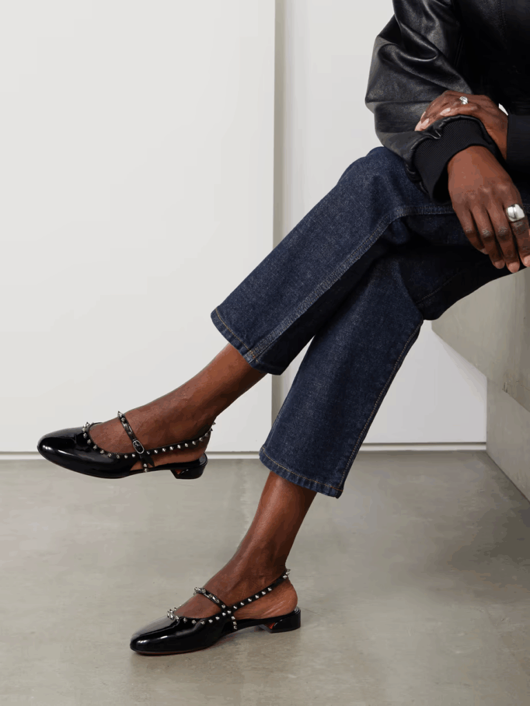 16. Christian Louboutin Sweet Janispikes Studded Patent-Leather Slingback Flats