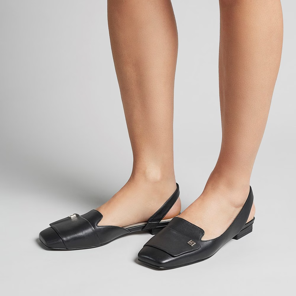 Architectural precision meets everyday wearability in these sculptural flats. The distinctive curved sides create a flattering silhouette that makes feet appear daintier.