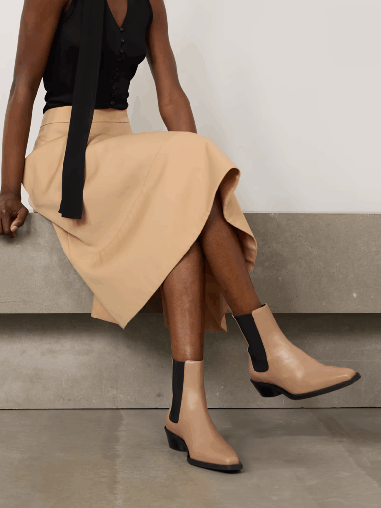 The KHAITE Nevada leather ankle boots are a masterpiece of modern design. Their sleek silhouette is perfect for the fashion-forward. Imagined for the urban landscape, these boots navigate from day to night with ease. The premium leather ensures durability while offering a luxurious feel.