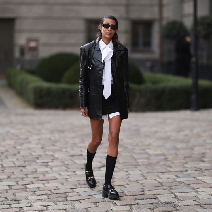 This look is pure power dressing with a street-style twist, and the platform loafers seal the deal. Paired with knee-high socks, a sharp mini skirt, crisp white shirt, and an oversized tie, the chunky shoes add just the right amount of attitude.