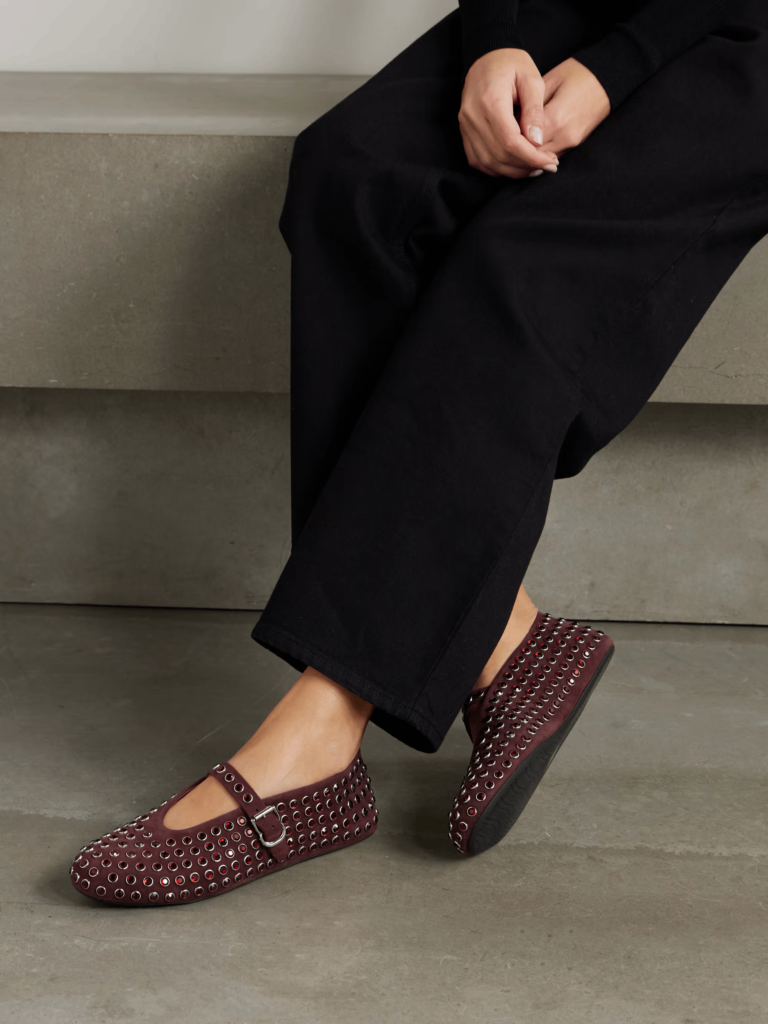 7. Azzedine Alaia Rhinestone-Embellished Leather Ballet Flats