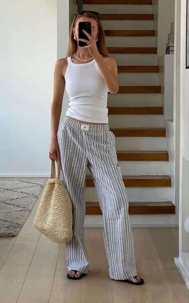 Nautical stripes meet beachy textures in the coastal cool trend that’s sailing into Summer 2025. Think lightweight linen shirts in ocean blues paired with relaxed white shorts or flowy palazzo pants.