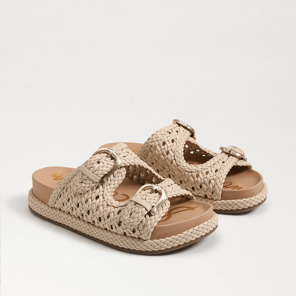Embrace the coastal charm with Sam Edelman Reid Double Buckle Braided Slide Sandals. These sandals feature a delightful braided design coupled with double buckle details, offering both style and adjustability.