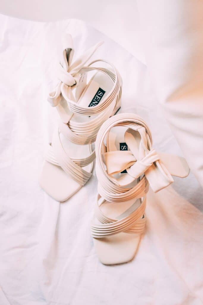 Why do I suggest you opt for neutral-colored heeled sandals? Well, first of all, a white lace dress has something highly gentle and delicate to it. So, it is not very appealing to pair such a dainty piece of clothing with a pair of brightly colored shoes.